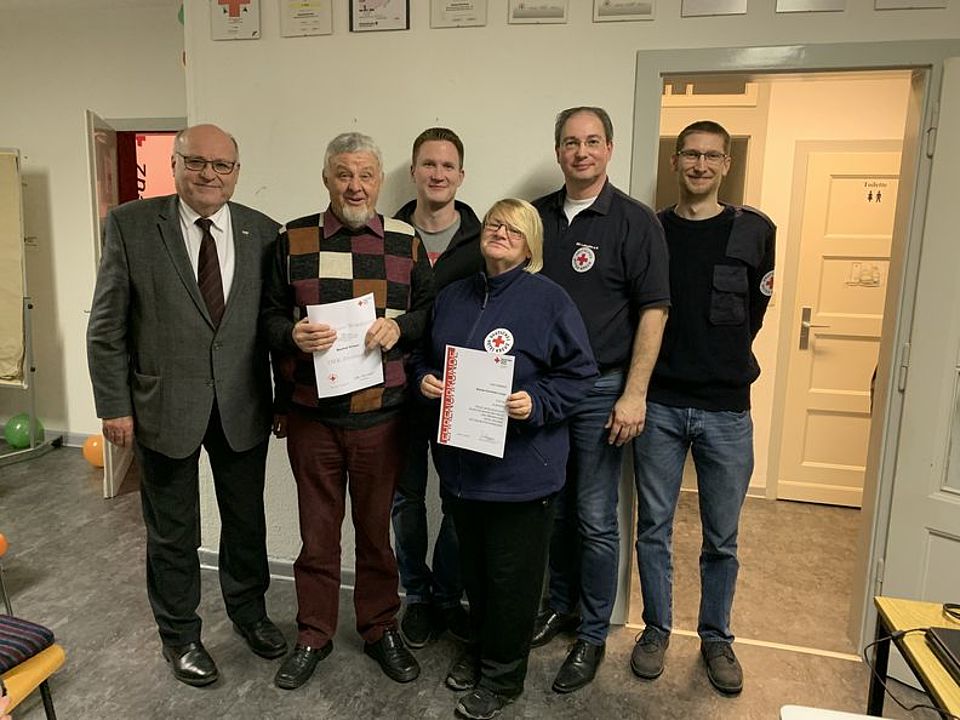 Zudem wurden durch Matthias Zemelka und DRK-Präsidentin Brigitte Müller-Hellwig Ehrungen vorgenommen. Für ihre Mitgliedschaft wurden ausgezeichnet: Martin Gerhardt (30 Jahre), Dr. Hans-Jörg Hilscher (25 Jahre), Holger Franck (15 Jahre), Theresa Schwartz und Andrea Fingerhut (10 Jahre), Sarah Schlüter, Denis Tischmeyer, Thorsten Hochrinner, Janine Gosmann, Janik Geitzenauer, Florian Friedrichs, Felix Fricke und Svetlana Ebertz (5 Jahre).