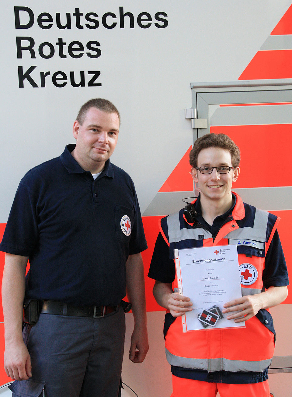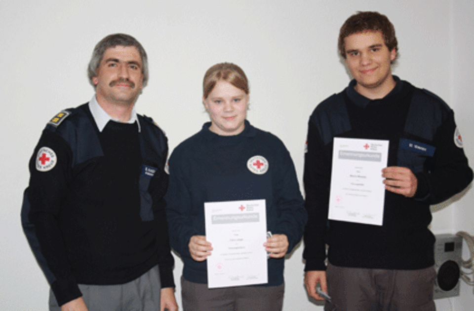 Am Freitag, 24.09.2010 wurden Cara Lange und Marvin Wessels durch den DRK Kreisrotkreuzleiter Ralf Kwiatkowski zu Führungshelfern ernannt. Die beiden werden zukünftig im Bereich der Einsatzzentrale des DRK Letmathe tätig. Zu ihren Aufgaben gehören u.a. Einsatzdokumentation, Meldungen an übergeordnete Führungsstellen weitergeben, wie z.B. den DRK Landesverband und Personalerfassung und -registrierung bei Einsätzen der Schnelleinsatzgruppen Verpflegung und Rettung.