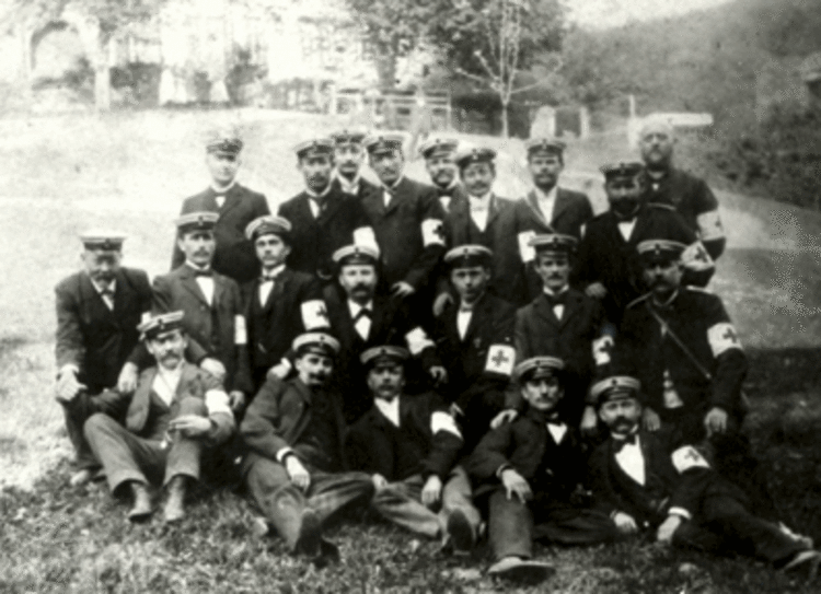 Die Kriegersanitätskolonne schloss sich direkt der "Organisation vom Roten Kreuz" an.
